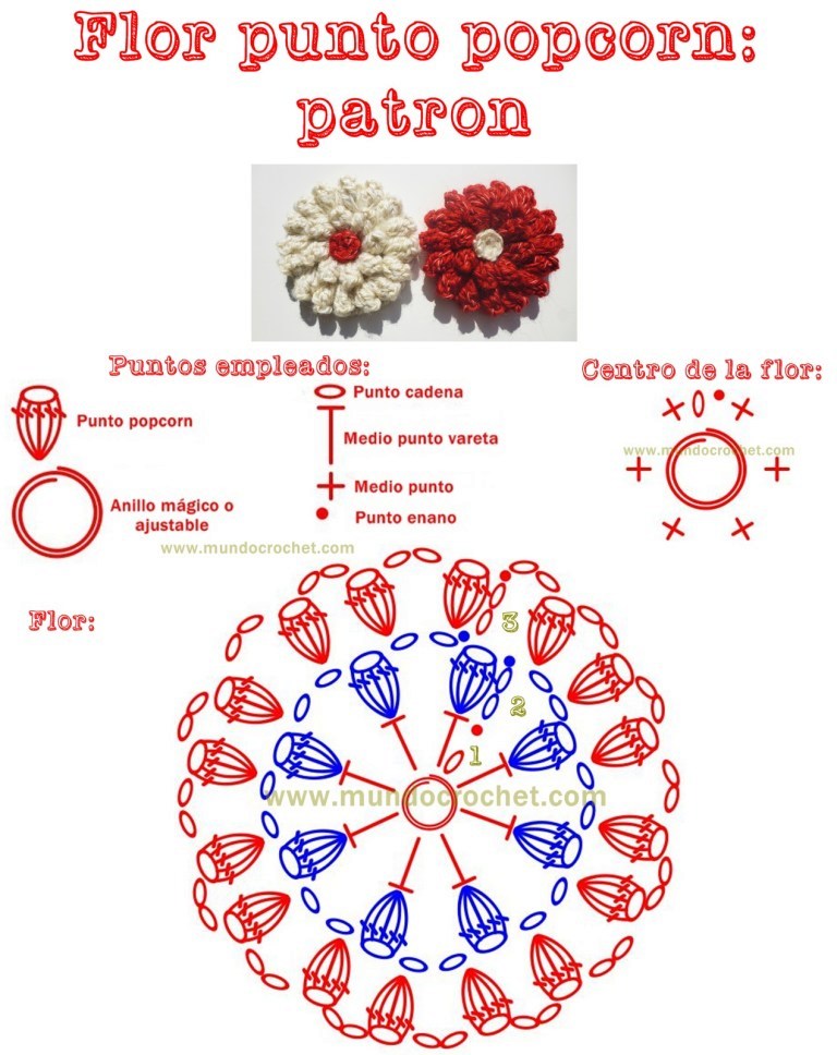 ergahandmade: Crochet Flower Popcorn + Diagram