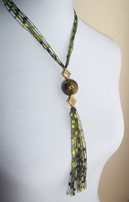 Trellis ribbon yarn necklace | Yarn necklace, Ribbon yarn