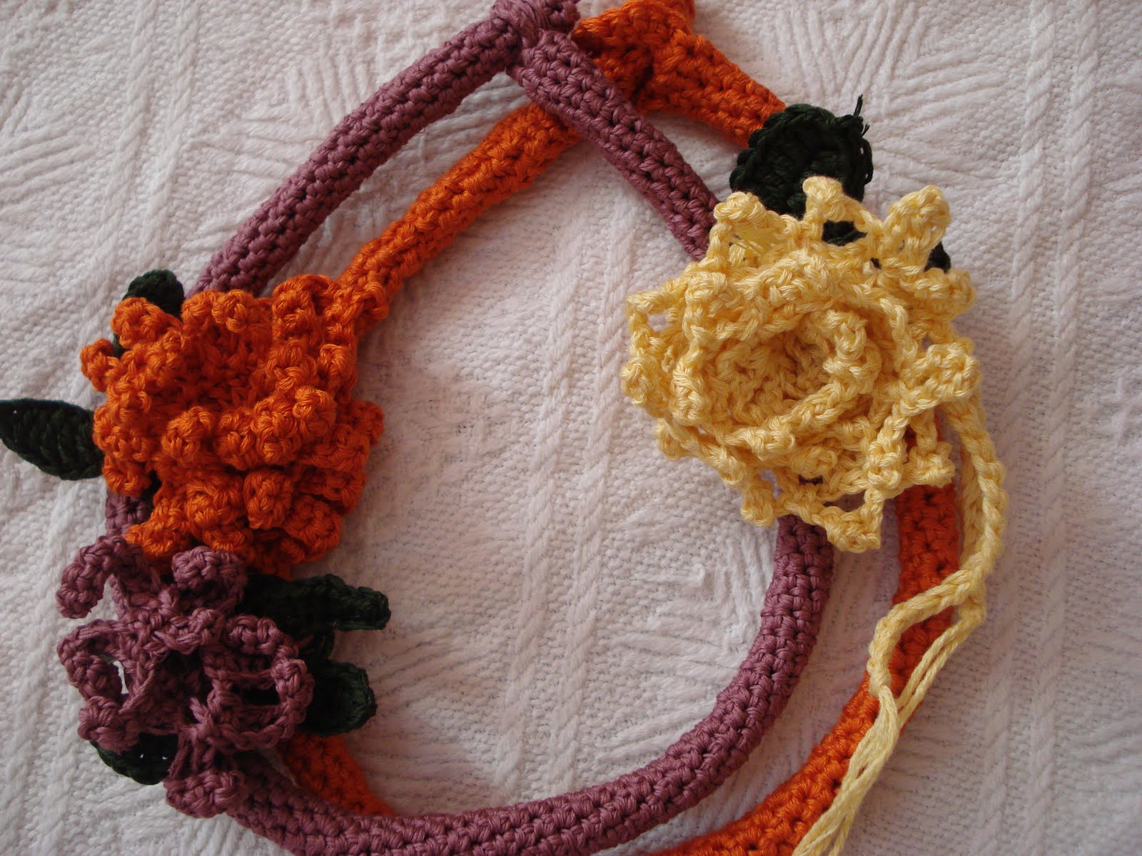 This crochet project is a cross between a necklace and an